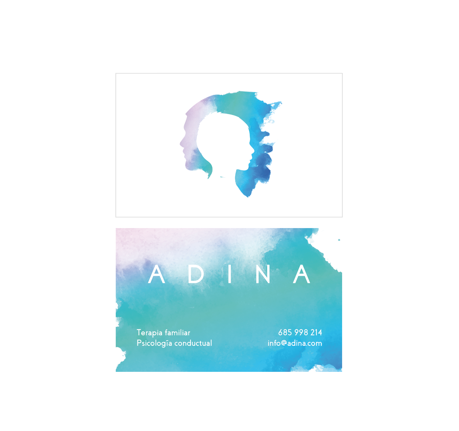 Planteamiento de diseño de imagen de marca para Adina, clínica de psicología.