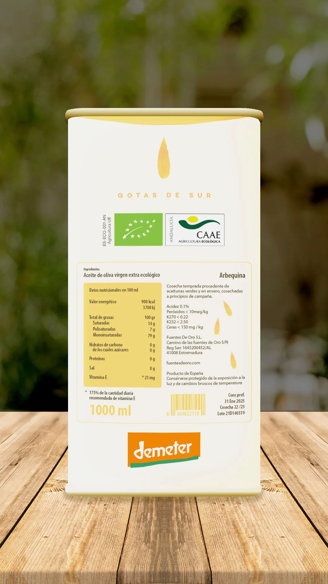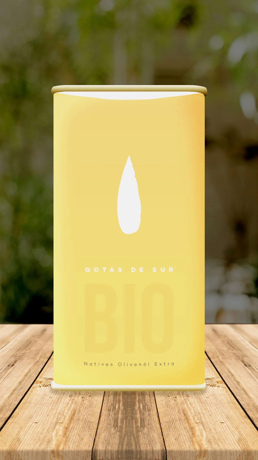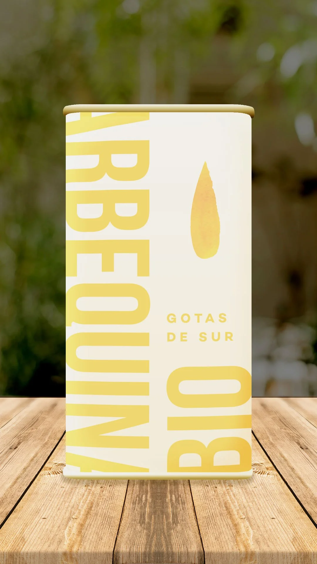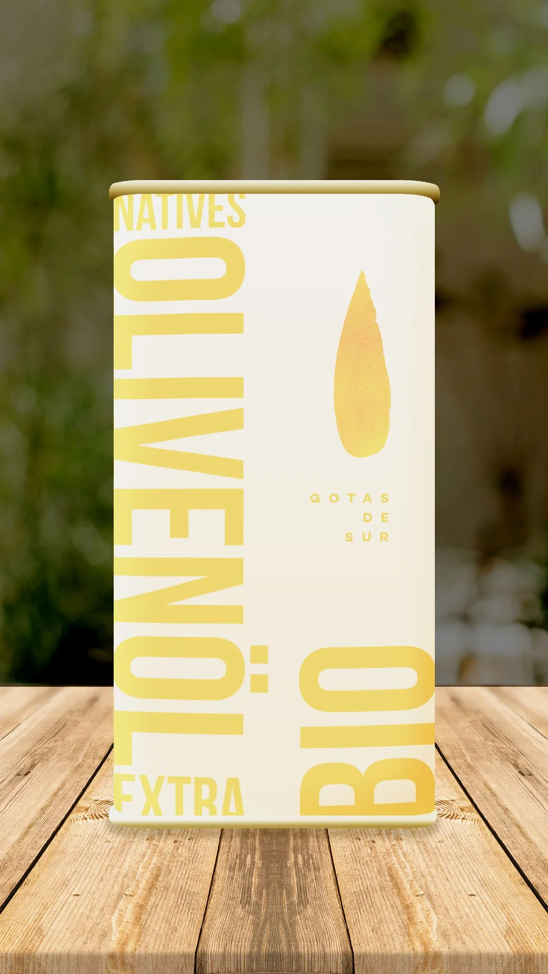 El minimalismo de este diseño quiere representar una gota de aceite, una caída desde la parte superior de la lata hasta el texto donde reza el nombre del producto.
